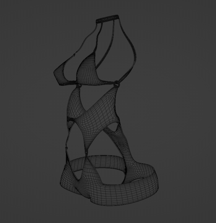 A basic swimsuit for when the days actually get warmer. These assets were made in Blender 3.3.0 by me from scratch and textured in Substance painter. It is rigged and weight painted for the default female Tori base. It does have the original base blend shapes transferred onto it.
