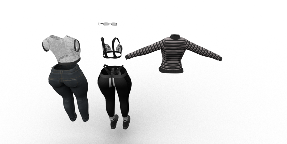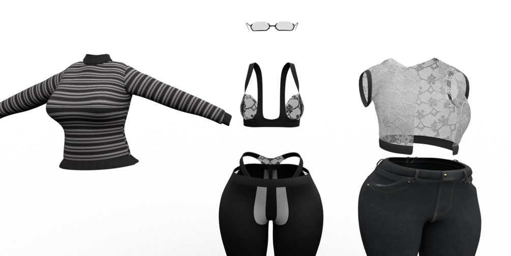 A set of multiple assets for a comfy or lazy look. This asset was made in blender 3.3.0 and textured in substance painter by me from scratch. It is rigged and weight painted for the default female Tori base it has most of the Tori shape keys transferred to the outfit.