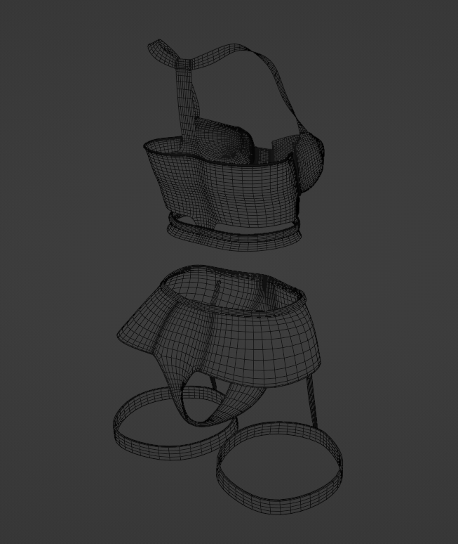Some Lingerie what else needs to be said. This outfit was made in Blender 3.3.0 from scratch by me and textured in substance painter. It is rigged and weight painted for the default female Tori base. It has some of the original base blend shapes transferred onto it.