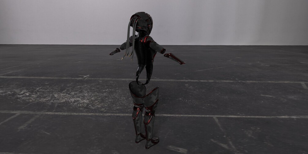 A simplistic tech suit. These assets were made in Blender 3.3.0 by me from scratch and textured in Substance painter. It is rigged and weight painted for the default female Tori base. It does not have the default Tori base shape keys.