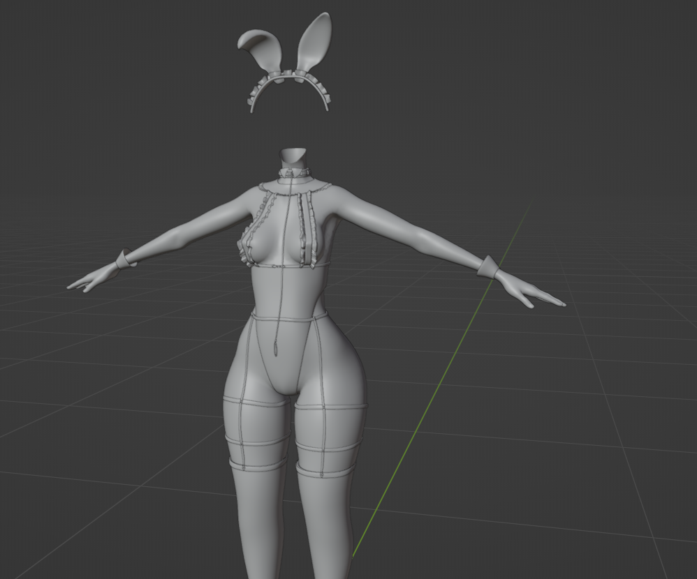 Can't decide if you wanna be a bunny girl or a maid? why not be both. This asset was made in blender 3.3.0 and textured in substance painter by me from scratch. It is rigged and weight painted for the default female Tori base it has most of the Tori shape keys transferred to the outfit.